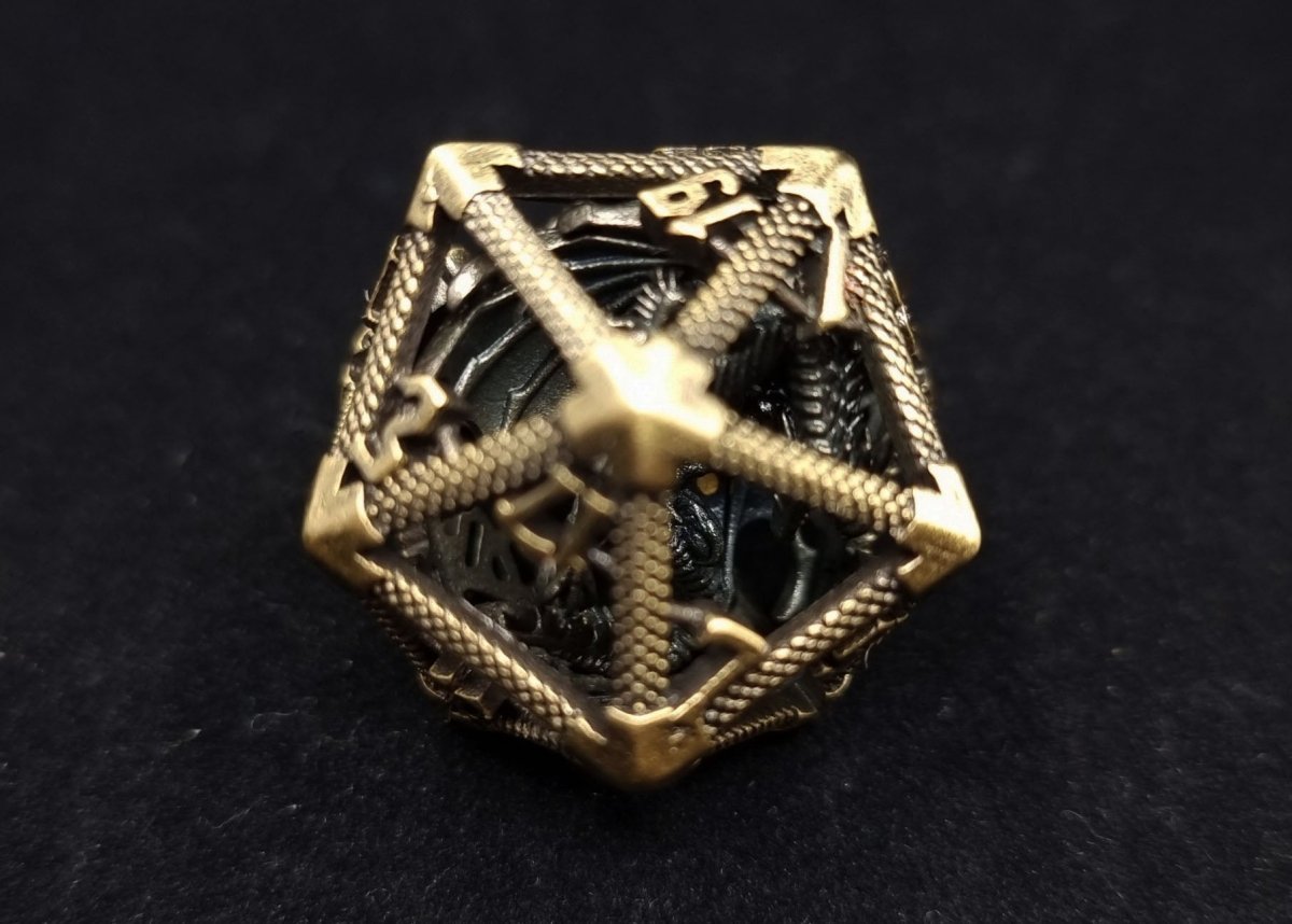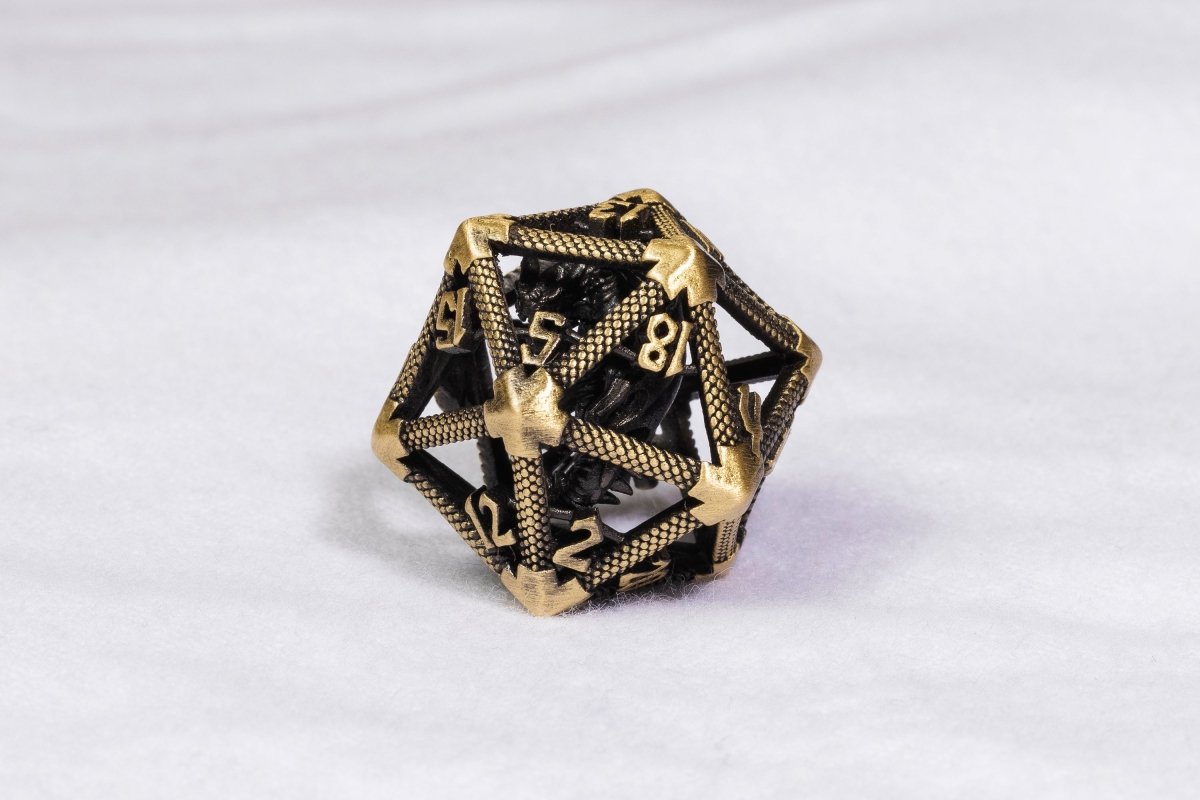 Ancient Brass Caged Dragon D20 Metal Dice