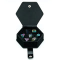 These dice are made from Obsidian come in their own hexagonal, faux leather, dice box.
