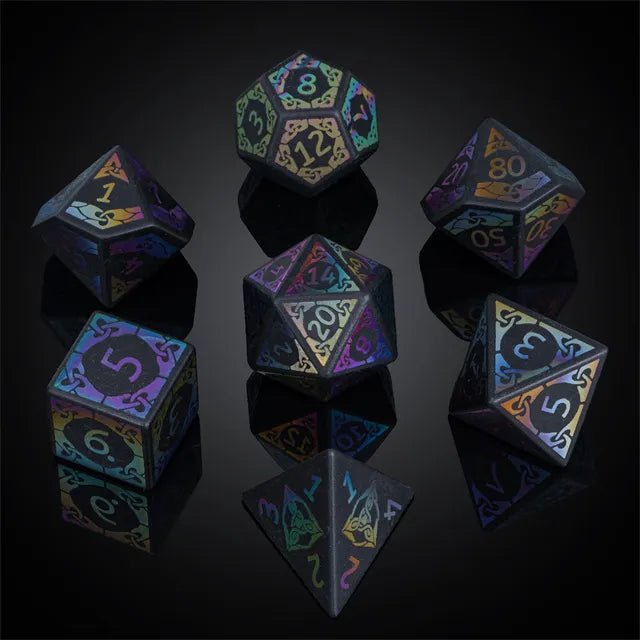 Obsidian Rainbow Gemstone Dnd Dice Set