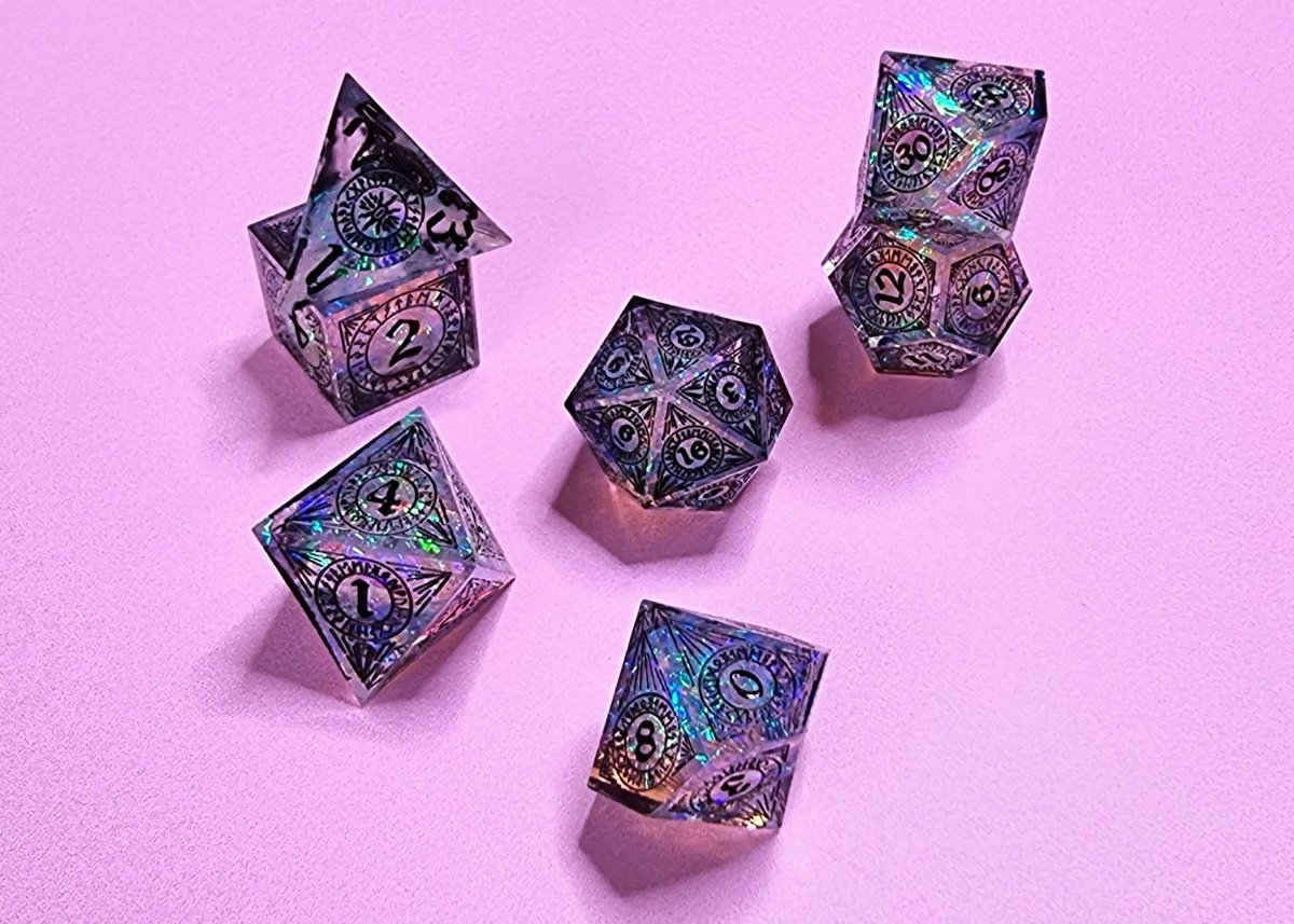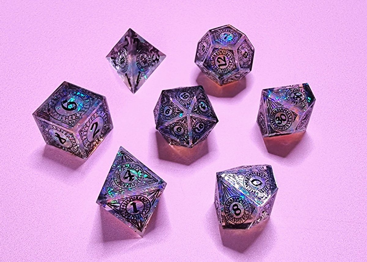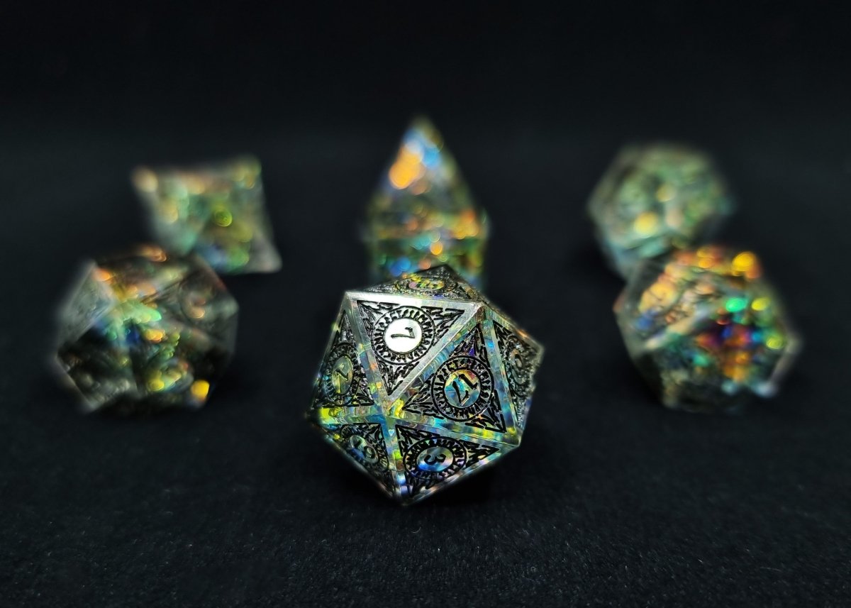 Gleaming with mesmerising swirls of colour, the Odin's Eye dice hold the essence of cosmic secrets and the wisdom of ages past. These dice shine as symbols of ancient knowledge and extraordinary perception. Their ethereal glow radiates an enigmatic power, alluding to the boundless depths of divine wisdom and the unfathomable mysteries they encompass.